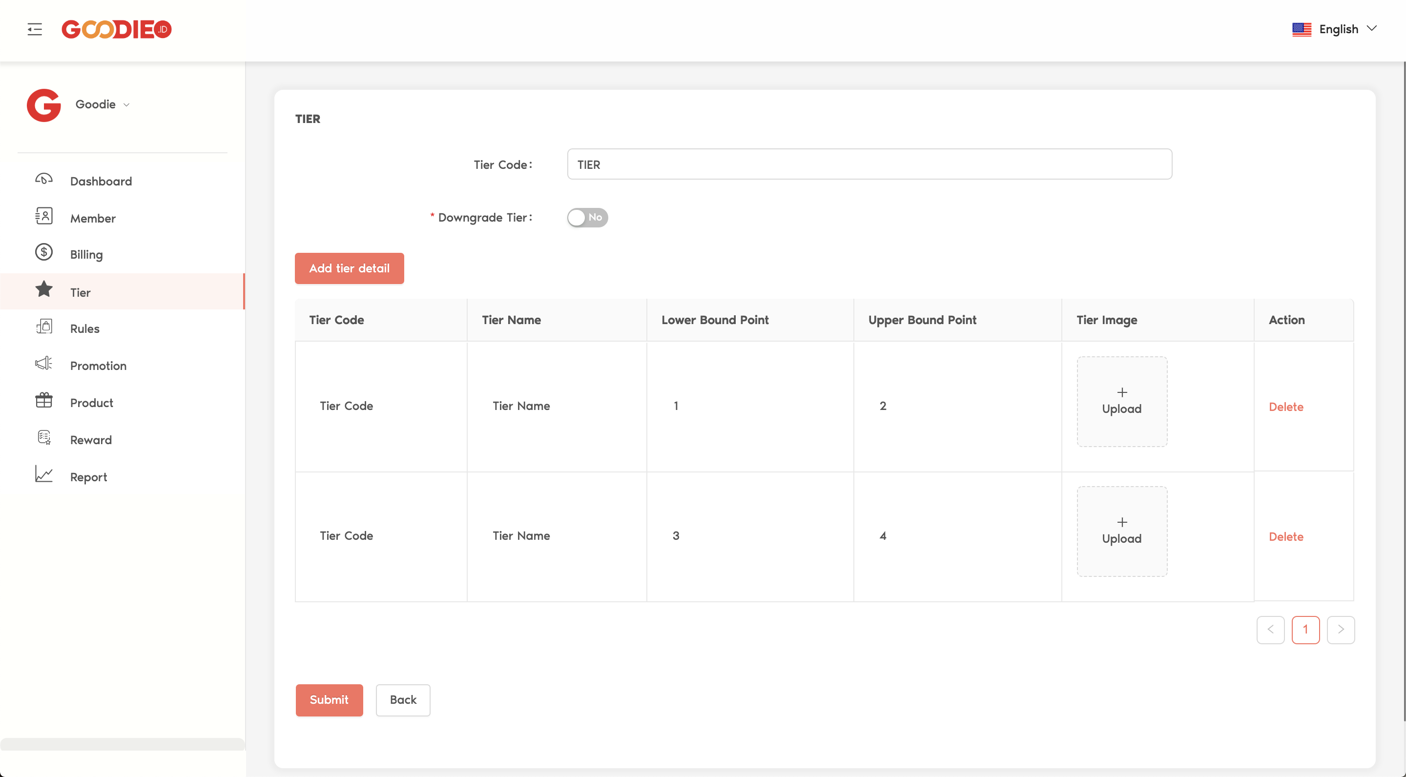 On the Tier menu, merchant can set up membership at customer level, and can manage the profit that will be obtained by the customer.